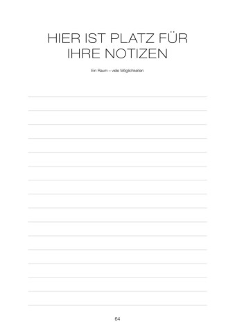 HIER IST PLATZ FÜR IHRE NOTIZENEin Raum – viele Möglichkeiten64